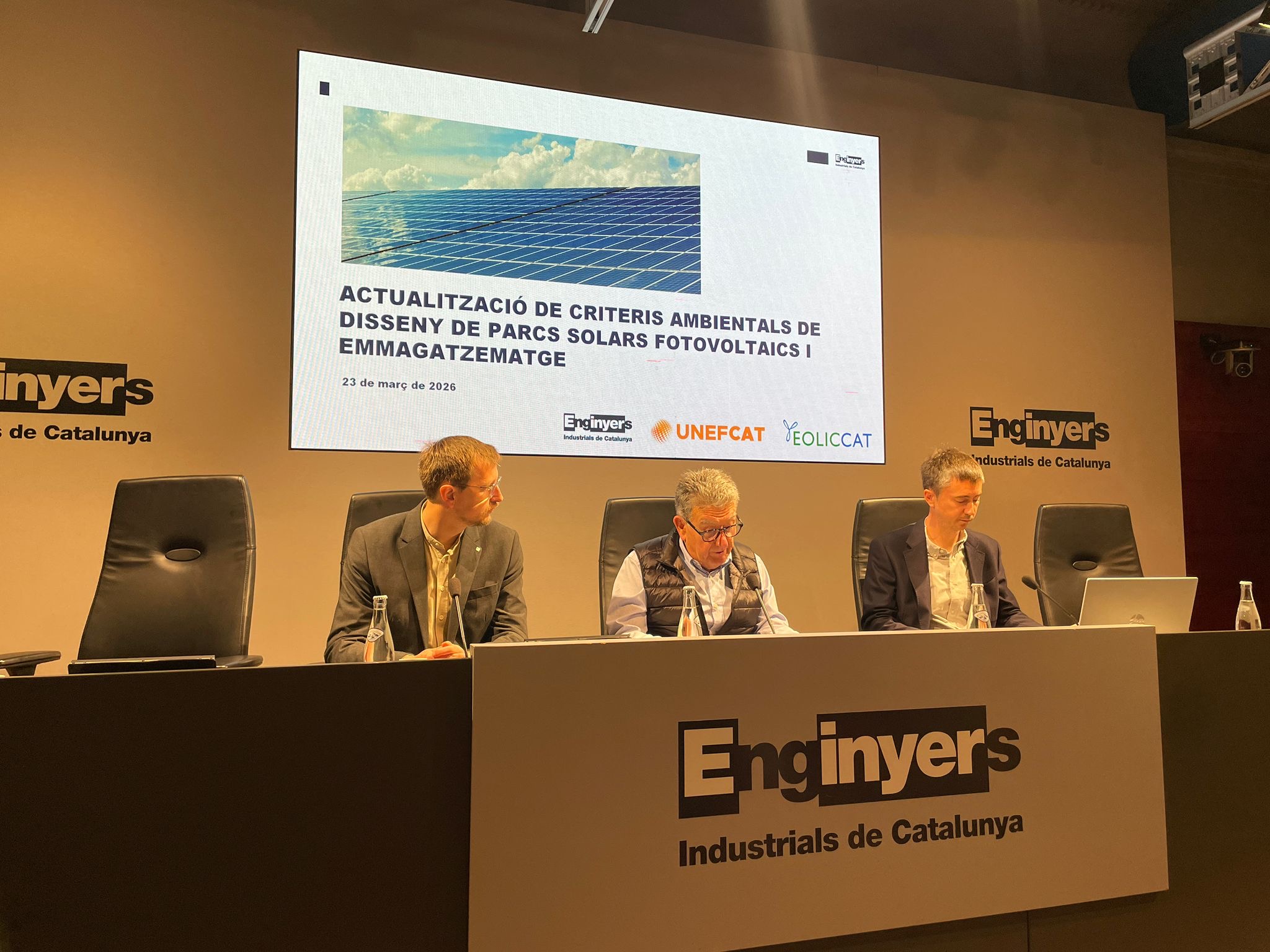 Per la seva banda, el president de la Comissió de Canvi Climàtic i Economia Circular dels Enginyers Industrials de Catalunya, Marc Oliva, ha posat de manifest com els estudis ambientals han continuat condicionant el desenvolupament dels projectes, mentre que el codelegat d’UNEFCAT, Salvador Salat, ha contribuït al debat sobre els reptes sectorials en la implantació de renovables. En la mateixa línia, el president de la Comissió d’Energia dels Enginyers Industrials de Catalunya, Lluís Pinós, ha remarcat la importància de disposar de més informació per facilitar la viabilitat dels projectes, assegurant que “com més informació tinguem, més fàcil serà que alguns projectes que abans no podien tirar endavant ara sí que ho facin”. Finalment, el president d’EOLICCAT, Víctor Cusí, ha defensat un enfocament integral, assenyalant que les dades han d’actuar com “un GPS” per orientar el desenvolupament dels projectes i permetre plantejar-los amb una visió de 360°.
