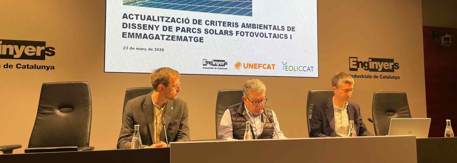 Fer compatible els projectes vinculats a la transició energètica com són les plantes solars fotovoltaiques, els parcs eòlics i els projectes d’hibridacions amb la conservació del medi ambient és un dels reptes del sector. La posada al dia de protocols, manuals i sistemes de compensació és contínua i per donar a conèixer el marc actual, experts i professionals que exerceixen en projectes energètics i ambientals han omplert aquest dilluns la sala d’actes del Col·legi a la jornada “Actualització de criteris ambientals de disseny de parcs solars, eòlics i emmagatzematge”, organitzada per la Comissió d’Energia, EolicCat i UNEFCAT.