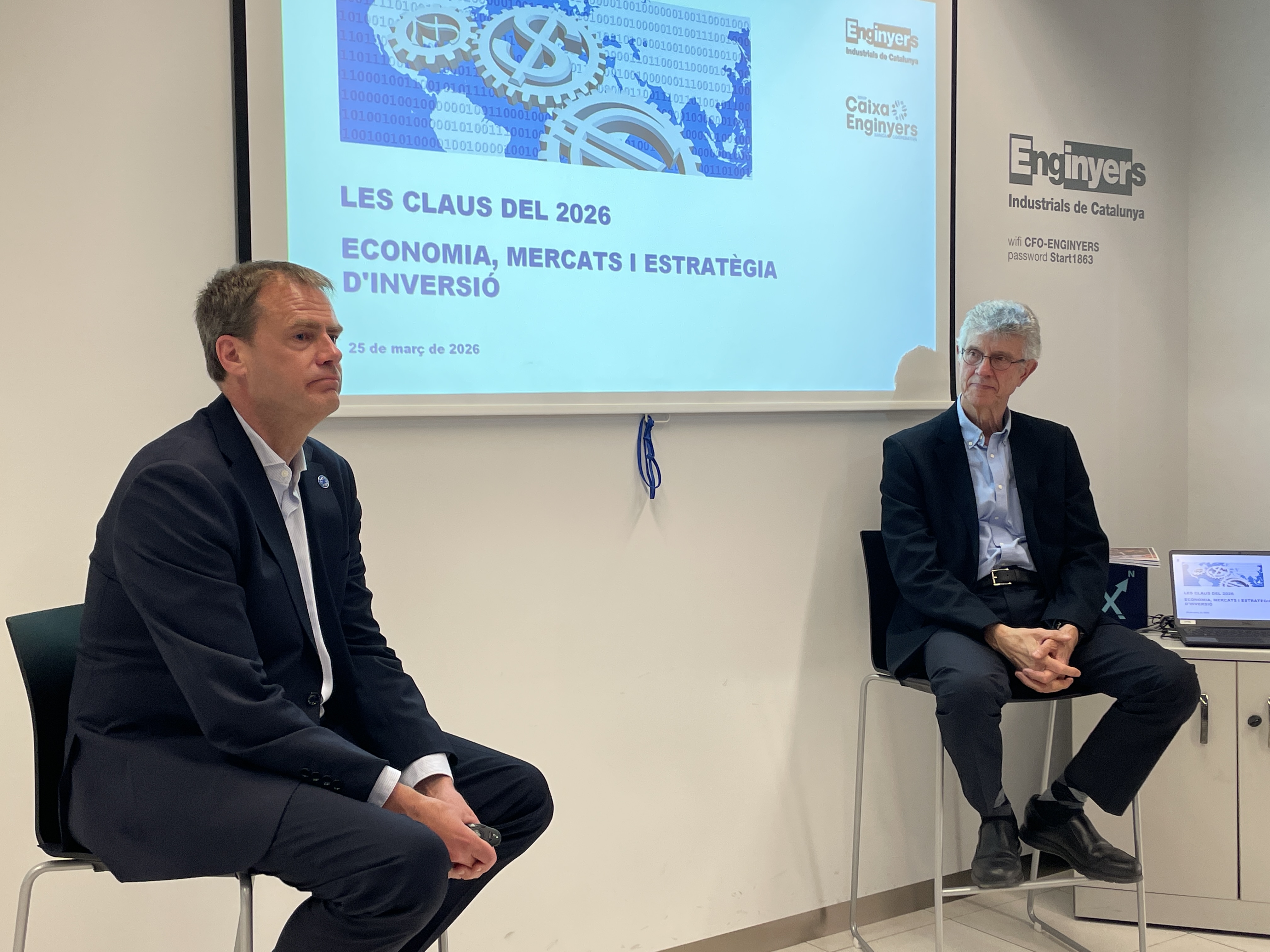 Veneçuela, Groenlàndia, Iran... El 2026 ha començat amb conflictes bèl·lics, amenaces d’invasions i altres esdeveniments que marquen la geopolítica actual i aquesta, de retruc, té conseqüències en els mercats i l’economia de tots els països. Analitzar què està passant i veure, amb dades concretes, quina perspectiva podem preveure i quines solucions hi aporta l’enginyeria s’ha abordat aquest dimecres a Les claus del 2026: economia, mercats i estratègia d'inversió, de la mà de Bas Fransen, director de Mercats de Capitals de Caixa Enginyers, i Jeroni Farnós, vocal de Junta del Col·legi.