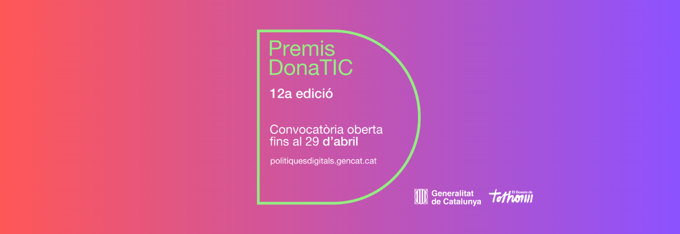 Fins al 29 d’abril, es poden presentar les candidatures a l'edició d’enguany, la dotzena, dels premis DonaTIC, uns guardons impulsats per la Secretaria de Polítiques Digitals del Departament d’Empresa i Treball, que volen visibilitzar i reconèixer el talent femení en les TIC i que van destinats a professionals, estudiants, investigadores, divulgadores, centres formatius, entitats, empreses, empresàries i emprenedores d'arreu de Catalunya.