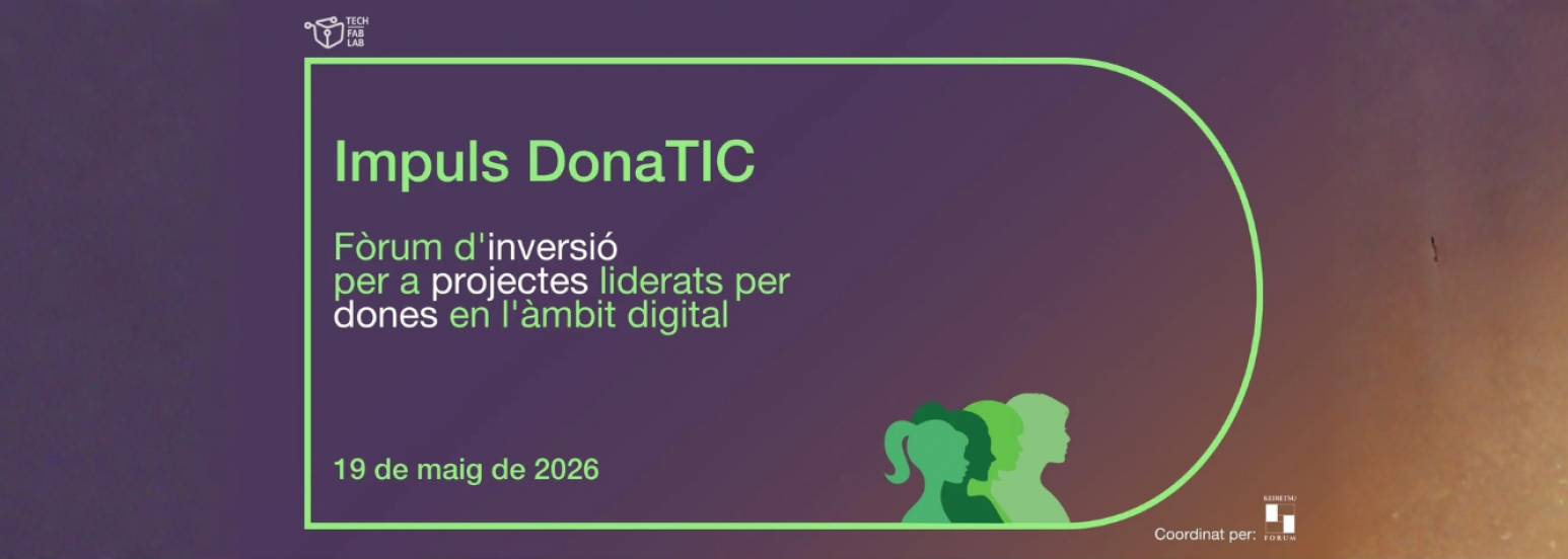 Ets dona i lideres un projecte en l'àmbit TIC? La Secretaria de Polítiques Digitals de la Generalitat, en el marc del pla DonaTIC, organitza Impuls DonaTIC, un fòrum d'inversió adreçada a emprenedores TIC amb projectes en cerca de finançament privat. L ajornada serà el 19 de maig al matí i hi participaran una desena de projectes prèviament seleccionats. Serà una ronda de presentació davant inversors i business angels i comptarà amb una taula rodona amb tres professionals destacades: Elena Rico, Managing Partner a Impact-Partners, Yolanda Pérez, Subdirectora General a Banc Sabadell i Directora de BStartup, i Mercè Tell, General Partner a Encomenda C.P.