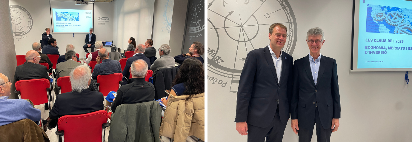 Veneçuela, Groenlàndia, Iran... El 2026 ha començat amb conflictes bèl·lics, amenaces d’invasions i altres esdeveniments que marquen la geopolítica actual i aquesta, de retruc, té conseqüències en els mercats i l’economia de tots els països. Analitzar què està passant i veure, amb dades concretes, quina perspectiva podem preveure i quines solucions hi aporta l’enginyeria s’ha abordat aquest dimecres a Les claus del 2026: economia, mercats i estratègia d'inversió, de la mà de Bas Fransen, director de Mercats de Capitals de Caixa Enginyers, i Jeroni Farnós, vocal de Junta del Col·legi.