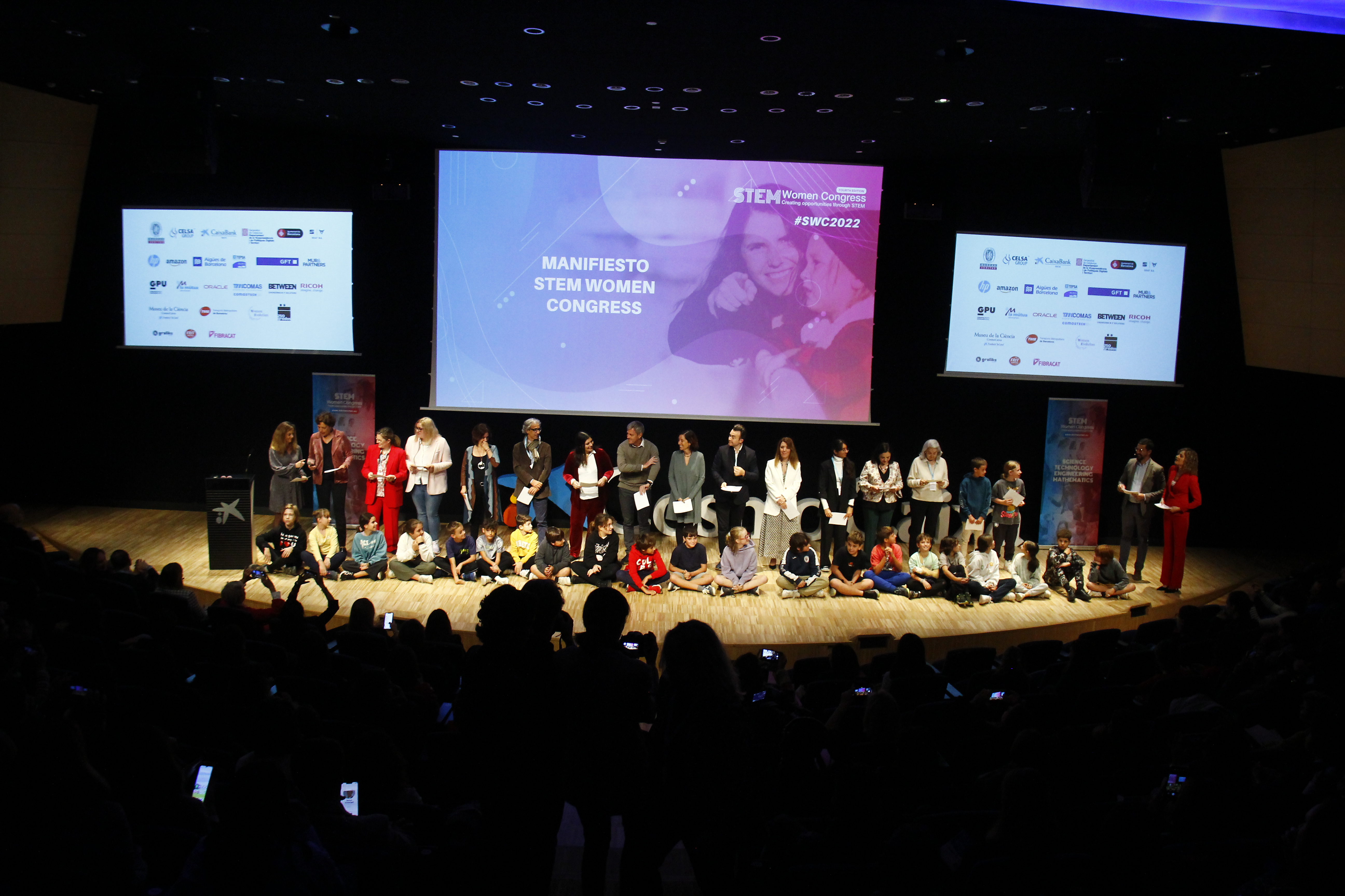 Participem al Stem Women Congress 2022 perquè creiem en un món en igualtat d'oportunitats. I, per aquest motiu, junt amb altres personalitats, la presidenta Maria Salamero , el degà Narcís Armengol i la presidenta de la Comissió d'Equitat, Tecnologia i Futur, Mireia Furriol, han llegit el manifest del congrés.