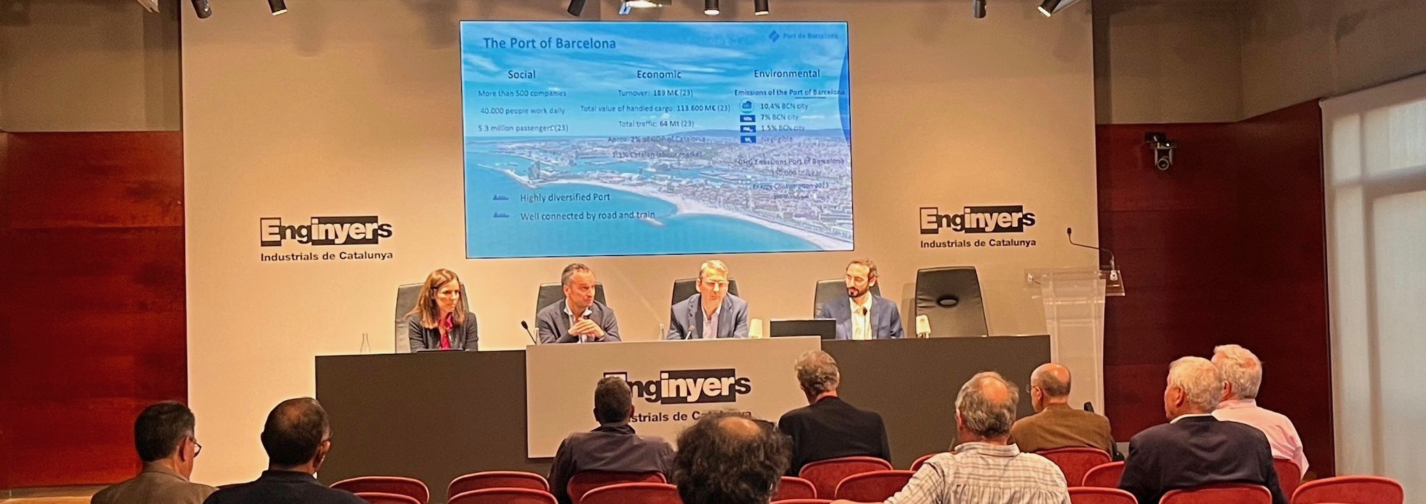 Héctor Calls, cap de Sostenibilitat al Port de Barcelona, va voler aportar un punt de vista més positiu i va explicar totes les accions que estan duent a terme per descarbonitzar no només el port sinó també tot el seu entorn. “L’objectiu és reduir en un 50% el global de les emissions del port el 2030, a través de la digitalització, polítiques d’eficiència energètica, producció d'energia verda, OPS, de l’economia circular, de la intermodalitat (fomentar el ferrocarril d’un 15 a un 32%) i dels combustibles alternatius i l’hidrogen”, va destacar. Calls va defensar que “el metanol és un candidat molt viable. Ens plantegem produir-ne dins el port, cal construir una cadena de subministrament com s’ha fet amb el GNL”.